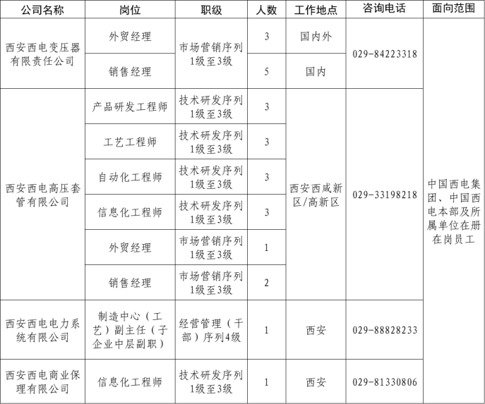 1.应聘人员应为中国西电集团、中国西电本部及所属单位在册在岗员工;